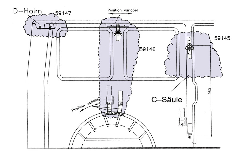 Prilagoditev tritočkovnega varnostnega pasu VW T5 panelni kombi komplet 1 C-stebriček levi ali desni