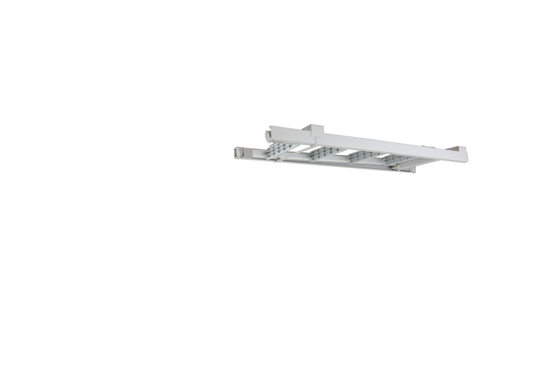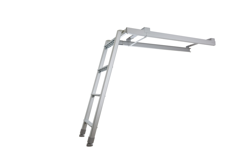 Das Schiebesystem ermöglicht es, die Leiter in einem eigenen Fach zu verstauen und reduziert so den Platzbedarf bei Nichtnutzung.