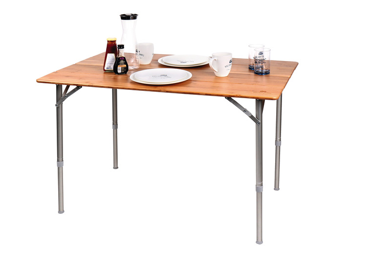 Miza za kampiranje z bambusovim vrhom – 80 x 60 x 43/65 cm
