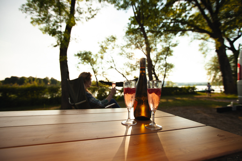 Kamping miza z bambusovo ploščo – 100 x 65 x 42/65 cm