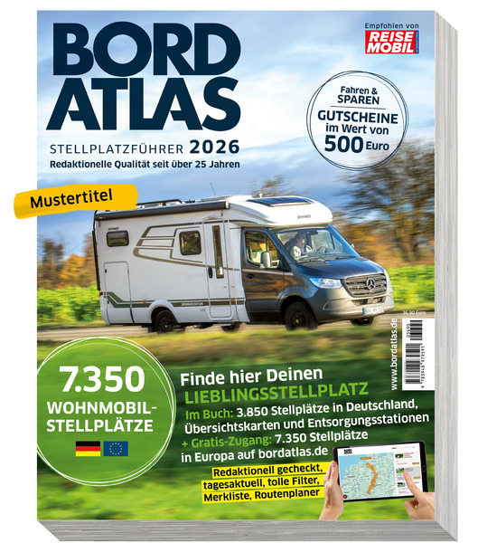 664 Seiten inkl. Zugangscode für den digitalen Bordatlas mit 7350 Stellplätzen in ganz Europa.
