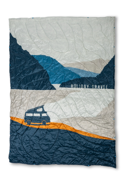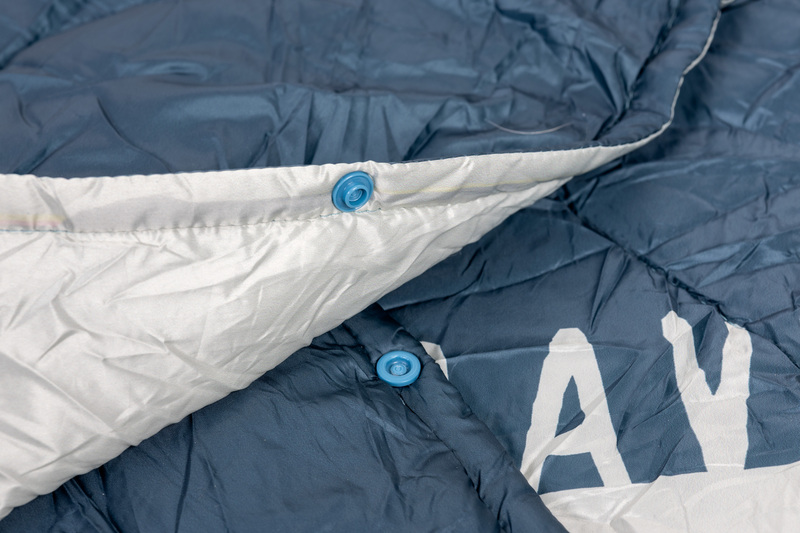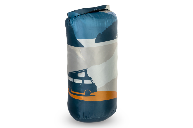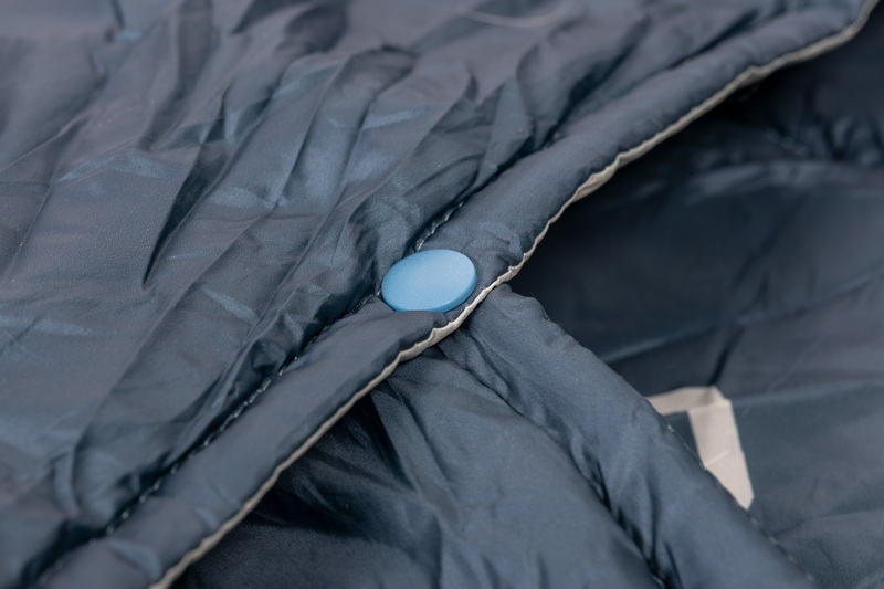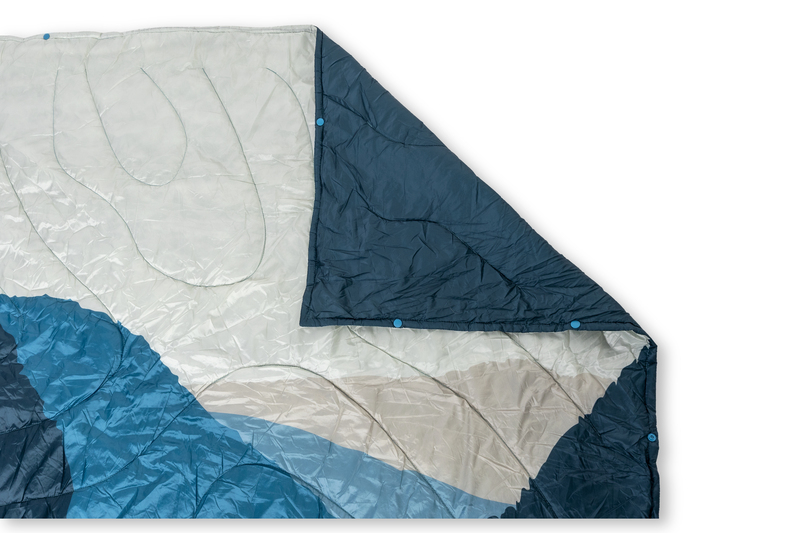 Ultraleichte Decke (200 x 145 cm) – ideal für Camping, Strand, Picknick & mehr. Wasserabweisendes Material mit wärmender Füllung. Abends auch tragbar – seitliche Druckknöpfe ermöglichen einfaches Umhängen. Verpackt im praktischen Tragebeutel mit Dry-Bag-Verschluss.