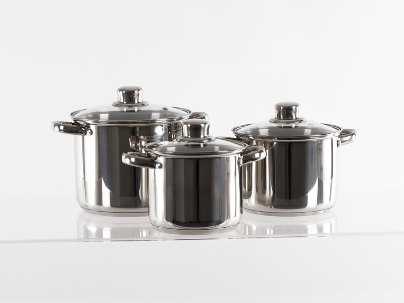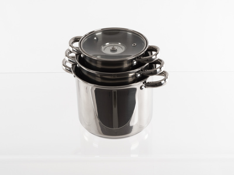Set loncev iz nerjavečega jekla s steklenim pokrovom – 6 kosov