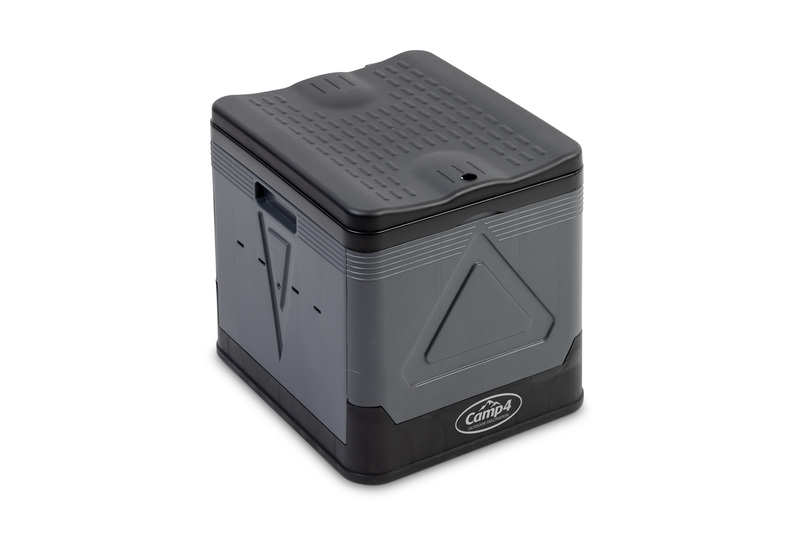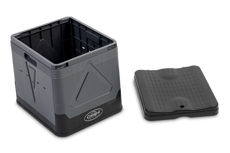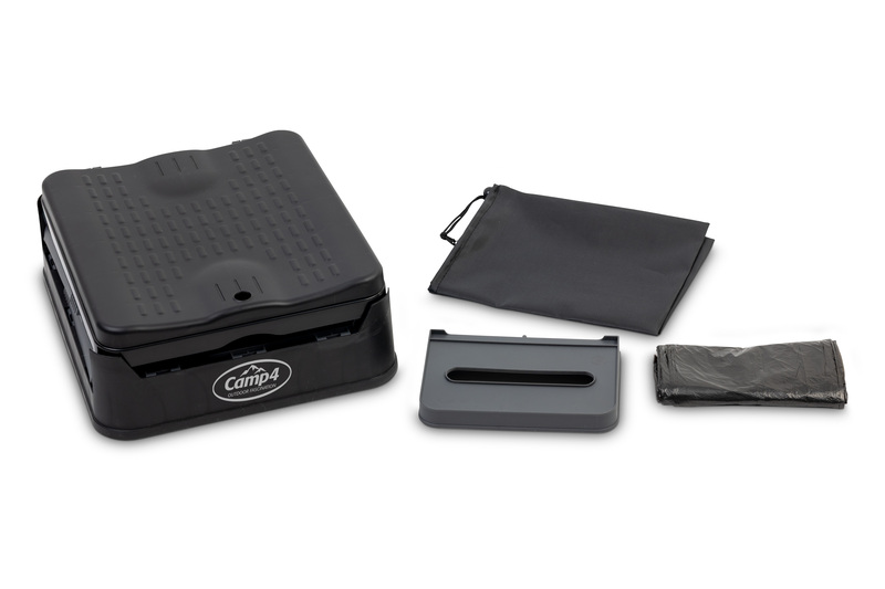 Zložljiva kampirska toaleta v črni/sivi barvi. Hitro in enostavno sestaviti, cca. 1 minuta časa sestave. Obremenitev do 150 kg. Material: PP. Zahvaljujoč mehanizmu zlaganja in praktični torbi za prenašanje je kampirska toaleta prostorčno varčno shranljiva.