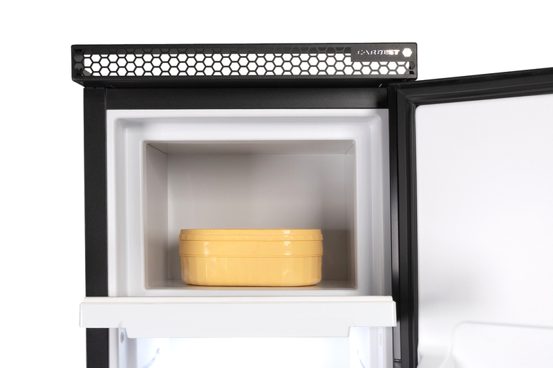 Vgrajeni hladilni akumulatorji v stenah hladilnika shranjujejo mraz ter omogočajo daljše hlajenje ob prekinitvi napajanja. Nočni način zmanjšuje hrup in porabo za boljši spanec. Integriran sistem »Vent-Position« preprečuje neprijetne vonjave in nastanek plesni s tem, da vrata ostanejo rahlo odprta. Skupni volumen / zamrzovalnik: 136 l / 15 l, povprečna poraba (12 V): 8 A, povprečna moč dan/noč: 75 W / 45 W, temperaturno območje: +10° do 0°C / -15°C. Predvidena dobava Q2/25.