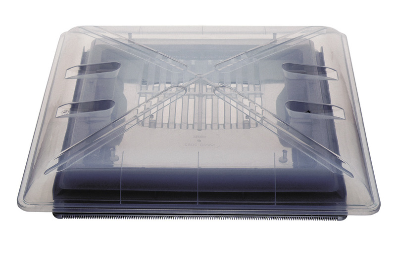 Strešni pokrov iz prozornega stekla 400 x 400 mm z roletami in mrežo proti komarjem