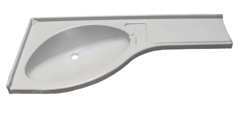Kotna polica za umivalnik desna bela 840x375x150mm