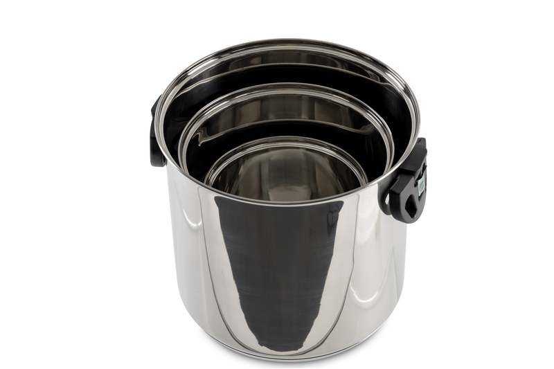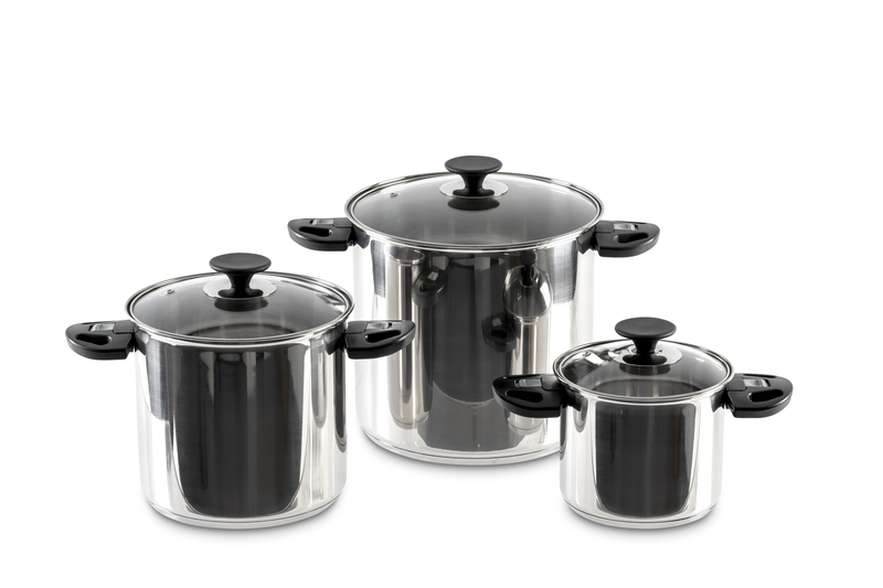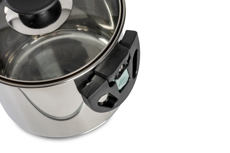 Kamp4 6-delni set loncev iz nerjavečega jekla – z zložljivimi ročaji in steklenim pokrovom
