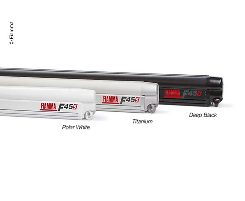 Fiamma tenda F45S 2,3m črno ohišje (Deep black), siva tkanina (Royal Grey).