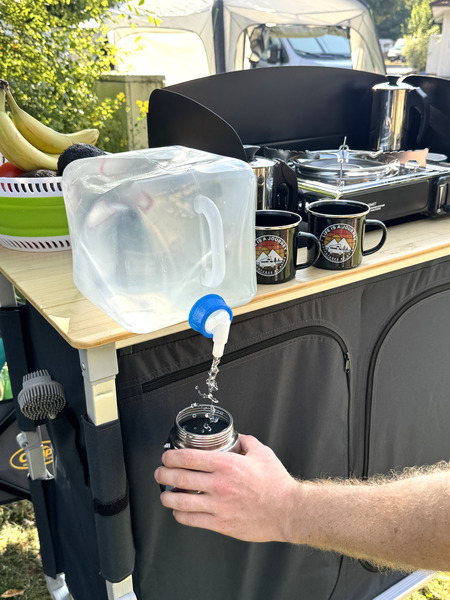 Praktische Wasserkanister. Leicht, handlich, zusammenfaltbar und schnell zu verstauen. Aus transparentem Kunststoff in Lebensmittelqualität. BPA-frei. Mit Ablaufhahn und Tragegriff. Temperatur -20°C bis 50°C.