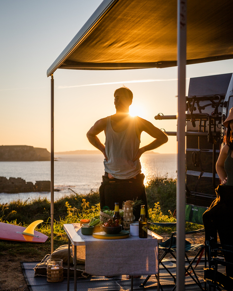 Strešna markiza F80S – dolžina 3,7 m – barva tkanine Royal Grey – barva ohišja Titanium