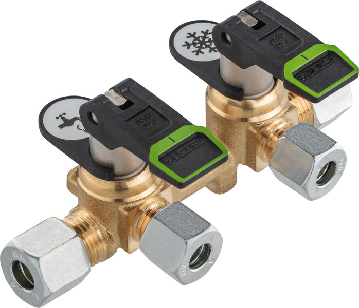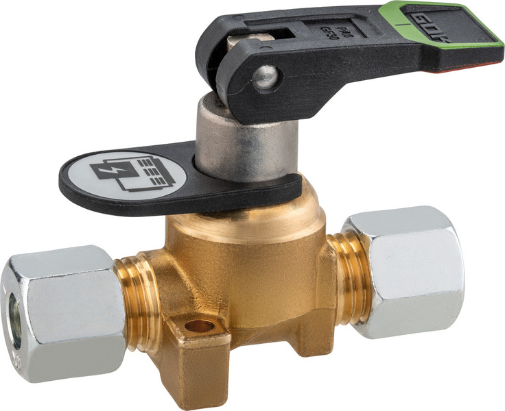 Razdelilni blok normalne velikosti hitro priključnega ventila tipa KSV s spojno matico tipa M in rezalnim obročem tipa D, izvedbe z 1 ali več izhodi.