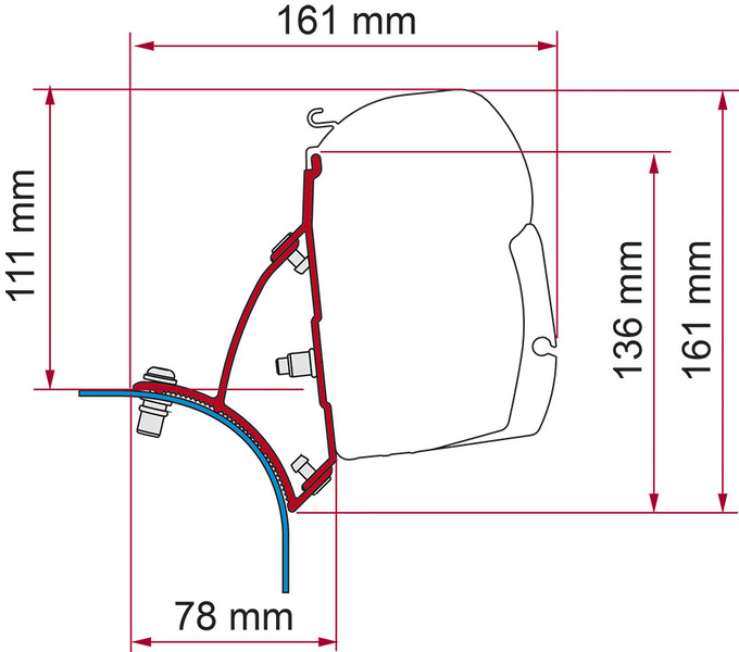 Fiamma F45 adapter za tendo za VW T5 / T6 z dvižno streho – desni pogon