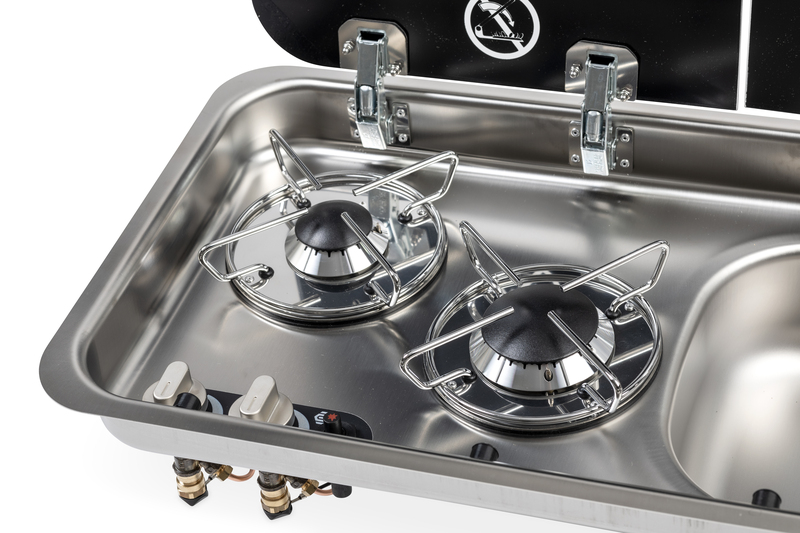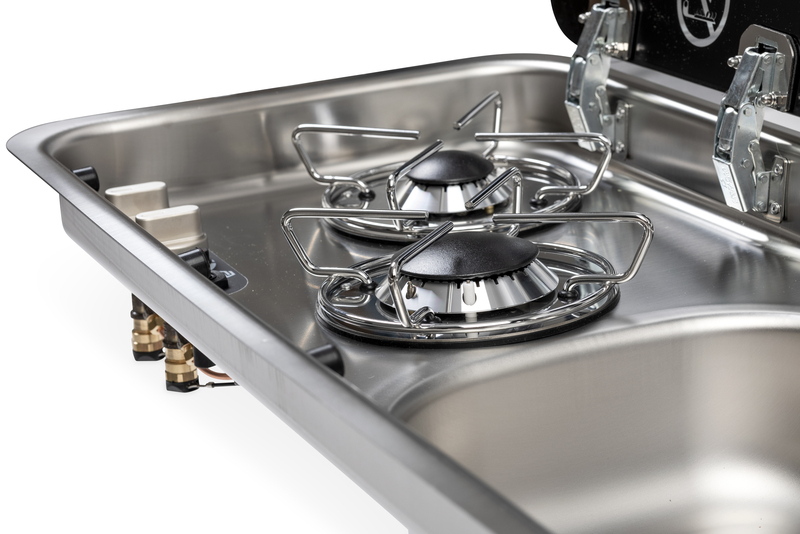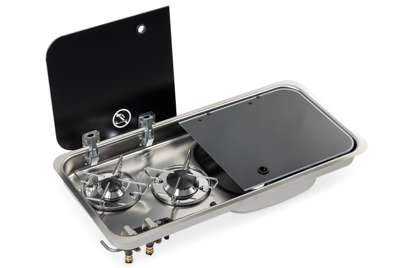 Nerjaveče jeklo, spodnja nameščena stikala, 2-plamenski gorilnik, Piezo vžig, termična varovalka in samodejni izklop plina ob zaprtju steklenega pokrova. Moč: 1x 1,8 kW, 1x 1,0 kW, poraba: 204 g/h, tlak 30 mbar, vgradne mere: Š688 x G319 mm, mere: Š726 x G346 x V145 mm. Luknja za pipo: ~33,5 mm (pipa ni priložena, priporočilo: 705048). Mere korita: Š300 x G240, odtok: tip E.