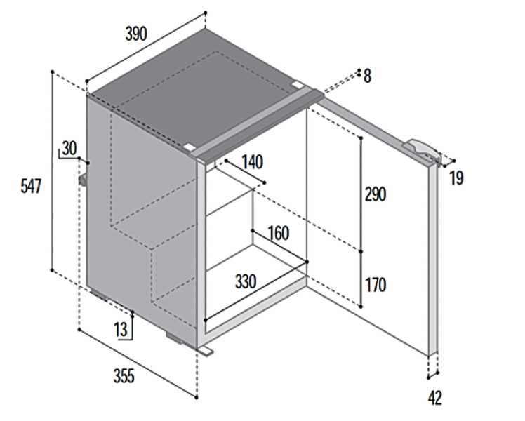 Kompresorski hladilnik C39i – 39 l – Siva