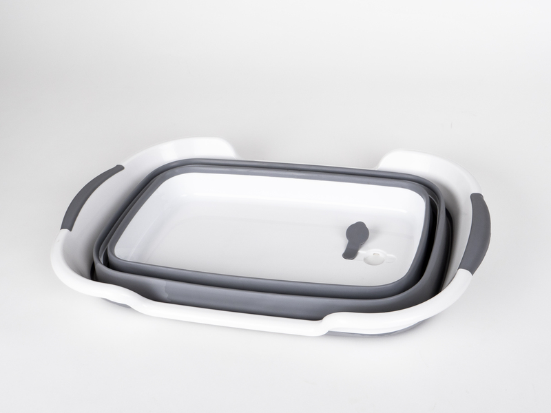Zložljiva kad / košara z odtokom – siva / bela