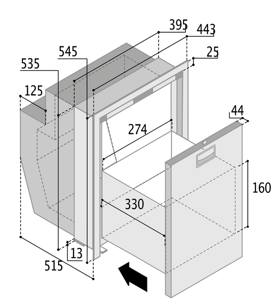 Predal hladilnika iz nerjavečega jekla DW51 RFX – 51 l