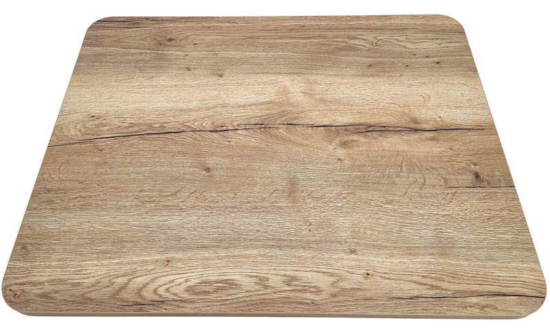 Lahka namizna plošča – Zgornja stran v videzu hrasta – Matirana bela spodnja stran – Robovi v videzu hrasta – Srednja