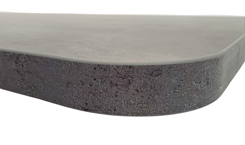 Lahka namizna plošča – Zgornja stran v videzu betona – Matirana bela spodnja stran – Robovi v videzu betona – Velika