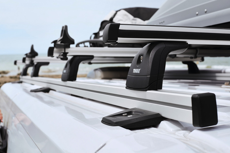 Dve aluminijasti stranski letvi vam služita kot osnova za pritrditev 2 do 4 tovornih prečk Thule ProBar. Pritrjevanje na originalne pritrdilne točke s pametnimi sponkami brez vrtanja