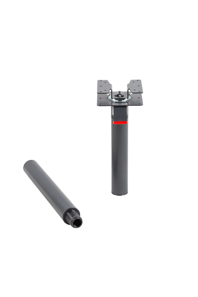 Mit Drehfunktion und vier Arretierpositionen über einen Hebel unter der Tischplatte. Die modulare Tischsäule ermöglicht drei unterschiedliche Höheneinstellungen.