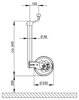 Oporno kolo 230 x 80 – Jeklena platišča – Gumijaste pnevmatike – Z indikatorjem obremenitve vlečnega droga