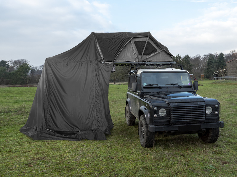 Pritrditev na strešni šotor VICTORIA 2.0 (900647) z zadrgo / lestev v notranjosti prizidka ščiti pred dežjem, vetrom in mrazom.