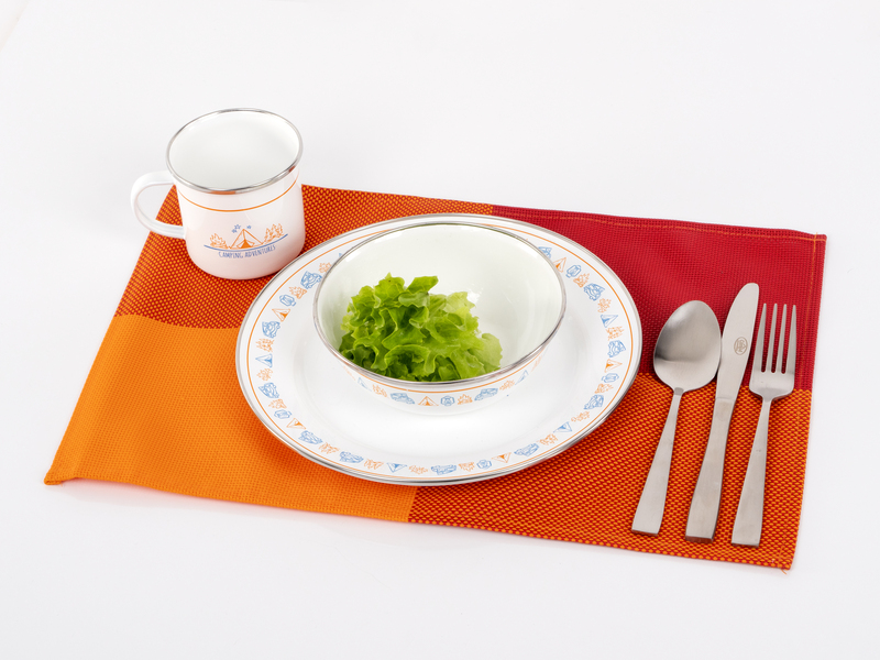 Set 2 podstavkov, različne barve. Pisana namizna posoda za kampiranje, prikolico, avtodom, teraso ali vrt. Komplet 2 kosov. Higienski in enostavni za pranje.