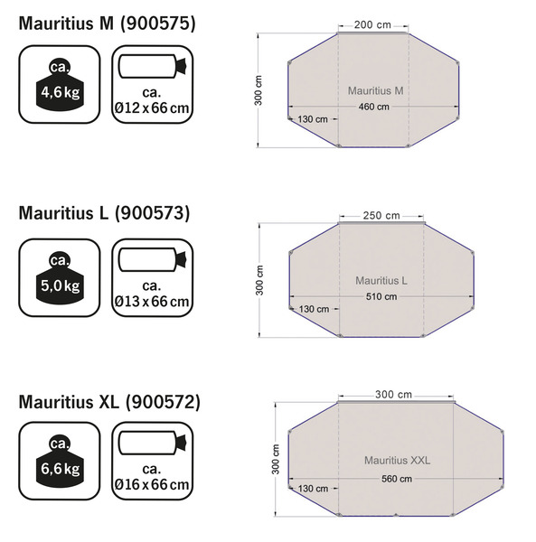 - Dolžina keder: Mauritius 460: 200 cm / Mauritius 510: 250 cm / Mauritius 510: 300 cm