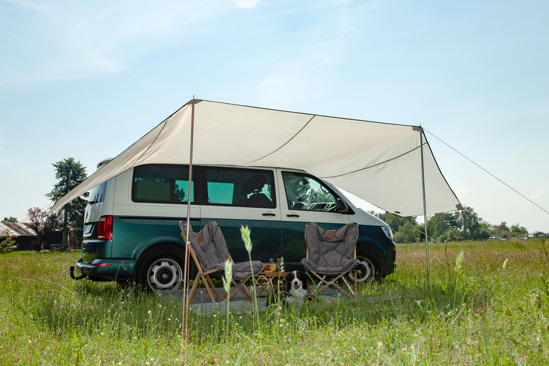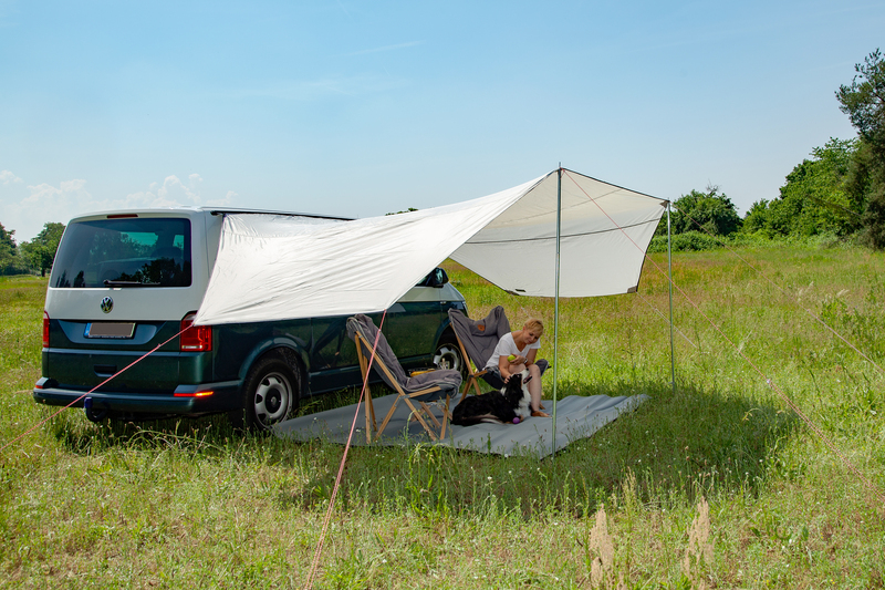 RE-TENT je nova kolekcija Reimo TentTechnology za zaščito naše narave. Šotorske tkanine so izdelane iz recikliranih plastičnih steklenic za enkratno uporabo. Vsak m2 je približno enakovreden trem 5-litrskim plastičnim plastenkam kokakole ali devetim 550-mililitrskim plastičnim plastenkam vode. Šotor MAURITIUS 460 potrebuje približno 12 m2. To ustreza 36 recikliranim 5-litrskim plastenkam PET cole. Preizkušeno jadro za sončenje Mauritius je na voljo v treh različnih velikostih. Vrtljivi stranski deli, ki jih je mogoče napenjati navzdol, zagotavljajo dodatno svetlobo ali zaščito zasebnosti.