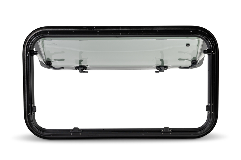 Novost v segmentu vozniških oken! Okno RW Fusion združuje pravo steklo na zunanji strani in akrilno steklo na notranji strani. AKRILNO STEKLO, VARNOSTNO STEKLO, DVOJNA ZASTEKLITEV, PREPUSTNOST SVETLOBE: 30 %, NAVZNOTER ZAOBLJENO STEKLO, ODPORNO NA UV-ŽARKE, Z ZRAČENJSKIM POLOŽAJEM, NASTAVLJIV JEKLEN IZPUSTNI MEHANIZEM (STOPENJSKO), MATERIAL OKVIRJA: ALU, ZA DEBELOST STENE 30–40 mm, VKLJUČNO Z MONTAŽNIM OKVIRJEM, RADIJ KOTOV OKVIRJA OKNA: 75 mm, ECE R43. Izrez B x H 500 x 450 mm, zunanji mera
