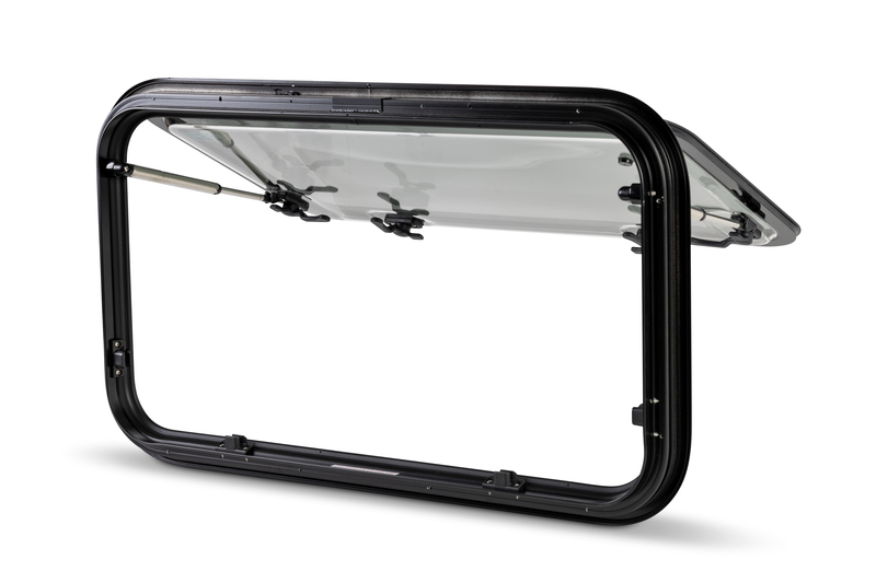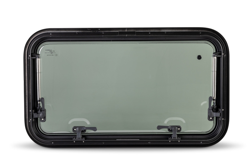 Novost v segmentu vozniških oken! Okno RW Fusion združuje pravo steklo na zunanji strani in akrilno steklo na notranji strani. AKRILNO STEKLO, VARNOSTNO STEKLO, DVOJNA ZASTEKLITEV, PREPUSTNOST SVETLOBE: 30 %, NAVZNOTER ZAOBLJENO STEKLO, ODPORNO NA UV-ŽARKE, Z ZRAČENJSKIM POLOŽAJEM, NASTAVLJIV JEKLEN IZPUSTNI MEHANIZEM (STOPENJSKO), MATERIAL OKVIRJA: ALU, ZA DEBELOST STENE 30–40 mm, VKLJUČNO Z MONTAŽNIM OKVIRJEM, RADIJ KOTOV OKVIRJA OKNA: 75 mm, ECE R43. Izrez B x H 700 x 300 mm, zunanji mera