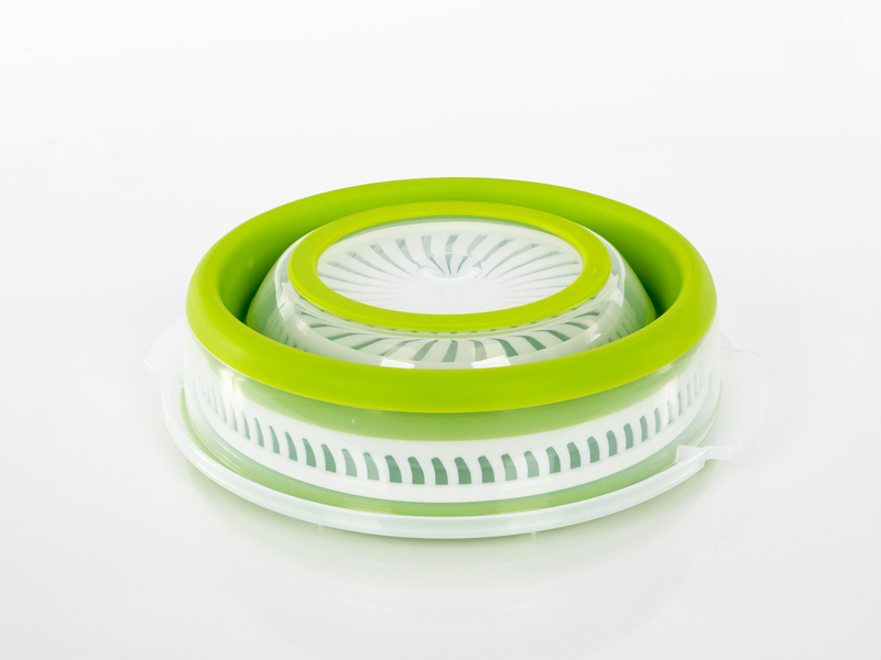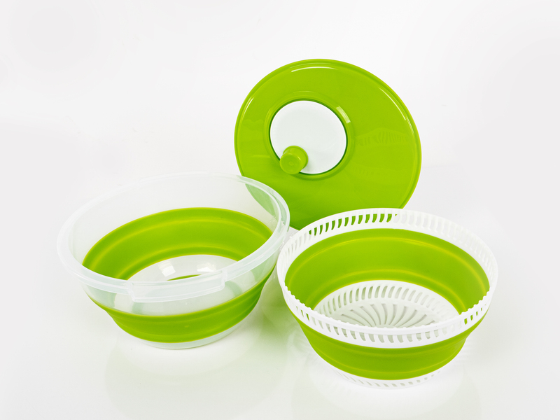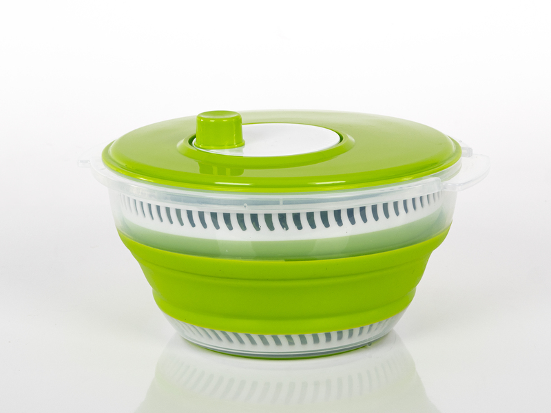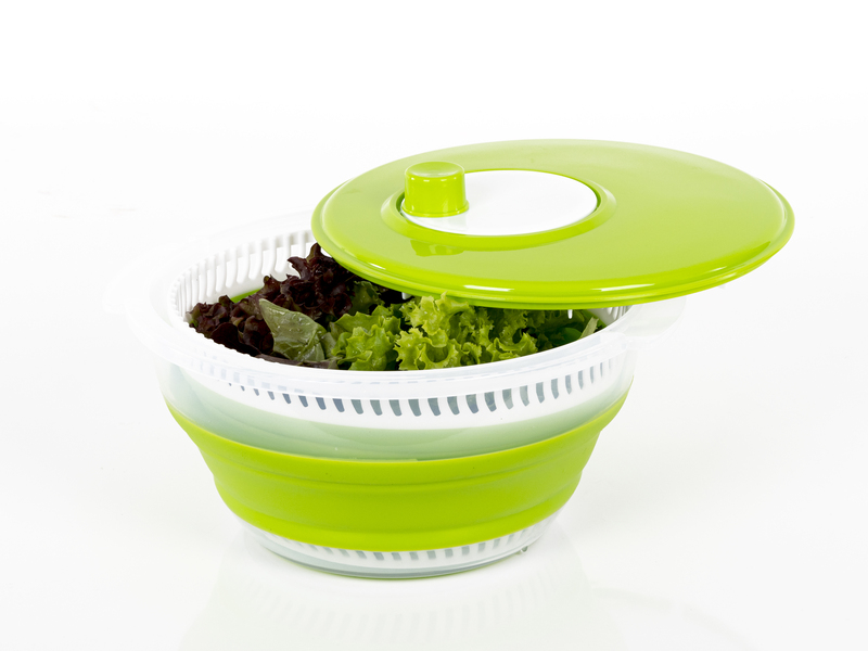 Složljiv vrtič za solato s pokrovom, vključno s cedilom in skledo – bel/zelen