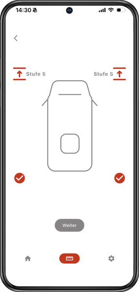 Idealna rešitev za natančno in udobno izravnavo vašega avtodoma. S pomočjo brezplačne aplikacije za pametni telefon izmerite nagib in prejmete korak-za-korakom navodila, s katerimi devet nastavljivih stopenj natančno prilagodite vašim razmeram – do 18 cm. Nosilnost: avtodomi do 5 t.