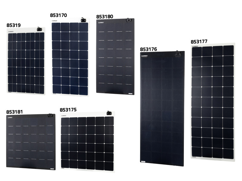 Zlasti pri visokih temperaturah je zmogljivost bistveno višja kot pri primerljivih modulih. To pomeni največjo učinkovitost brez zmanjšanja zmogljivosti. Predhodno sestavljen solarni kabel skrajša čas namestitve in z dolžino 6/8 m zadostuje tudi za velika vozila. Zaradi nadpovprečne upogljivosti so moduli Carbest idealni tudi za uporabo v pomorstvu. Priporočamo regulator polnjenja MPPT (npr. 851005 ali 851006).