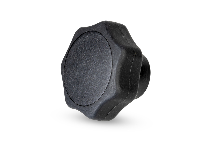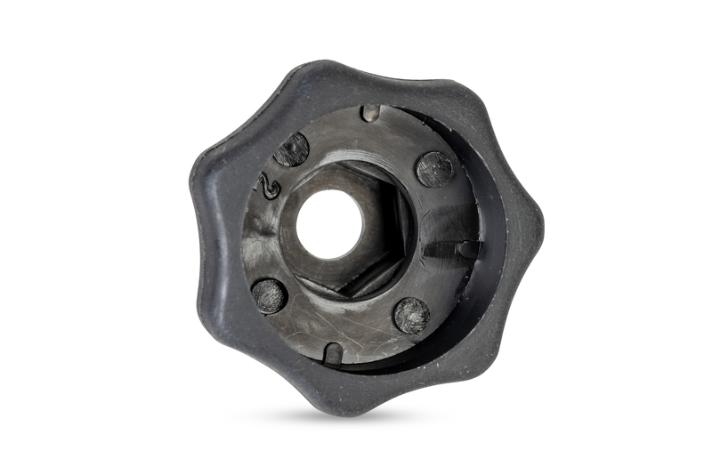 Šesterokotni izrez v podstavku je primeren za matico/vijak M6 ali M8 (oboje ni vključeno v obseg dobave). Obseg dobave: zvezdasti ročaj z zaščitnim pokrovčkom. Barva: črna.