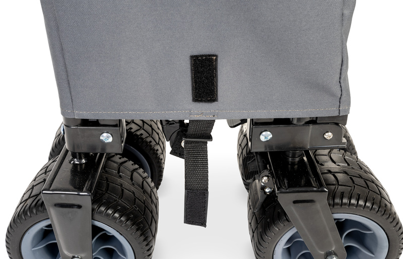 Plažni voziček LAGUNE je popoln spremljevalec za izlete na plažo in aktivnosti na prostem. Dodatno stabilnost nudi vstavljiva talna plošča, praktičen pokrov in majhno pakirano velikost omogočata hitro zlaganje in enostaven transport. L 98 × B 56 × H 57 cm, kapaciteta 100 L, nosilnost 120 kg, Material: poliester + jekleni okvir, kolesa PU (10 × 18 cm), barva: antracit/petrol modra,