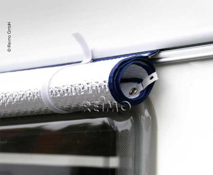 Termalna folija za odboj sonca, zaščito pred mrazom in vročino ima majhno težo in vzdržljivost. Zaradi standardne tekstilne cevi (Ø 7,0 mm) jo je mogoče enostavno potegniti v cevno vodilo. Folija je po vsej dolžini obrobljena s temno modrim poliestrskim trakom, vogali pa so zaobljeni. Standardno je opremljena z dvema možnostma pritrjevanja:
