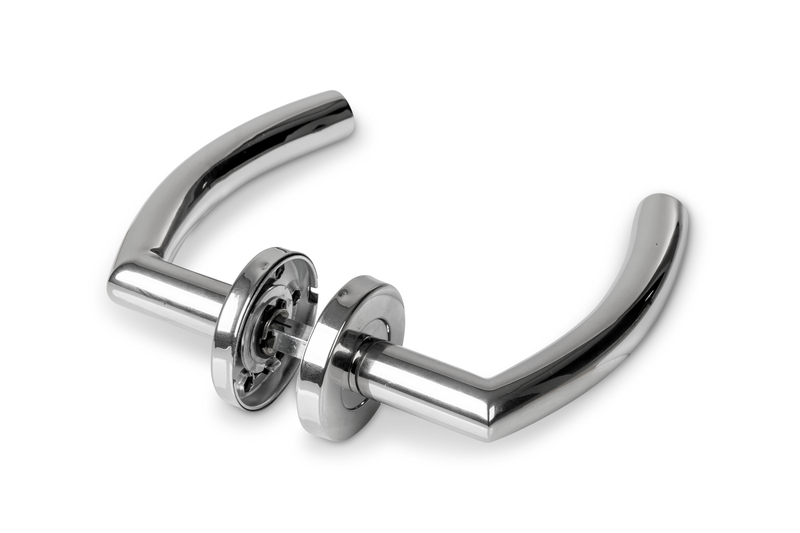 Komplet kljuk za vrata srpaste oblike, jeklo, površina: krom (visoki sijaj)