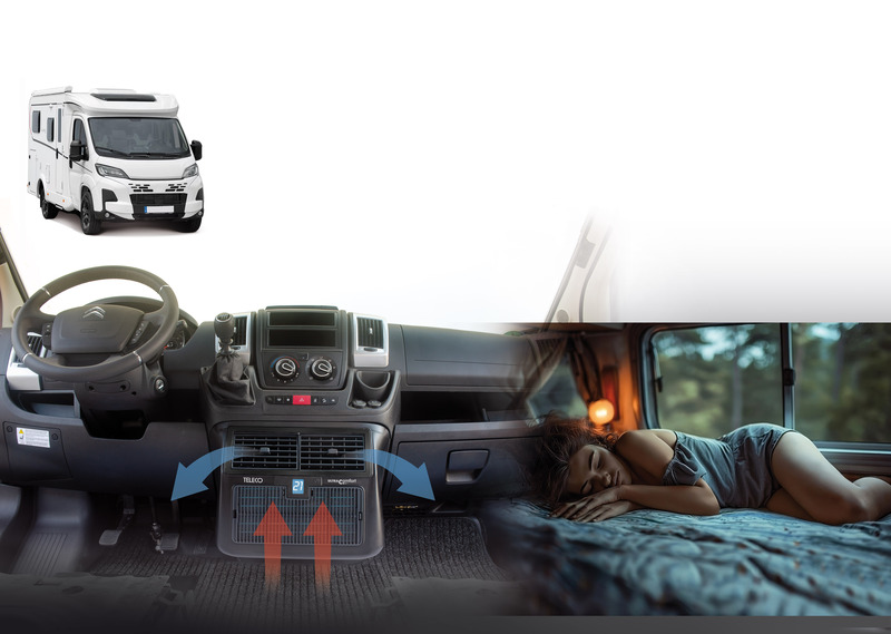 Eine neue und innovative Konstruktion verlagert die Klimaanlagen für Wohnmobile vom Dach in den Motorraum, mit dem Diffusor unter dem Armaturenbrett. Dies ermöglicht, Platz auf dem Dach freizumachen, den Schwerpunkt zu senken und vor allem in Fahrzeugen mit Aufstelldach eine eigene Klimaanlage für den Innenraum zu installieren. Teleco Ultra Comfort sind die ersten Klimaanlagen der Welt, deren Diffusor im Bereich unter dem Armaturenbrett des Fahrzeugs installiert ist. Sie wurde speziell entwickelt für Stellantis-Fahrzeuge (Fiat Ducato, Citroën Jumper, Renault Boxer, Opel Movano). Das Besondere ist, dass der Kompressor im Motorraum des Fahrzeugs eingebaut wird, ohne das technische Komponenten am Fahrgestell verändert werden müssen. Zur Montage wird vorhandener Freiraum im Motorraum genutzt und kein weiterer wertvoller Stauraum benötigt. Die Klimaanlagen bestehen aus zwei Einheiten: 1x Die Inneneinheit wird in das Armaturenbrett im Fahrzeuginneren eingesetzt 2x Die Außeneinheit besteht aus zwei mit einem Schlauch verbundenen Teilen, die hinter der Stoßstange des Fahrzeugs installiert werden. Das Kältemittelgas ist bereits in der Klimaanlage eingefüllt und auf alle Teile einschließlich der wasserdichten Verbindungsschläuche verteilt. Dank der Wärmepumpentechnologie kann das Gerät als Klimaanlage und als Heizung verwendet werden.