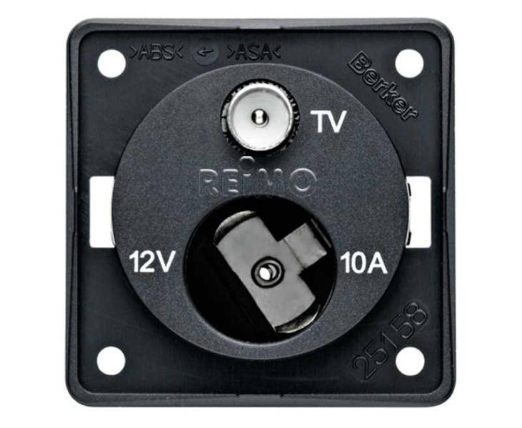Vtičnica za televizijsko anteno z vtičnico 12V, antracitna ohlapna