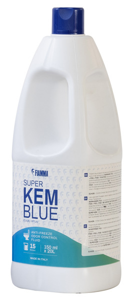 Super Kem Blue – čistilo za kasetne in prenosne toalete. Pospešuje razgradnjo in zmanjšuje nastanek plinov ter neprijetnih vonjav tudi pri visokih temperaturah. Vonj evkaliptusa. Na voljo tudi kot koncentrat. Nevarnost: H317, H318, H410